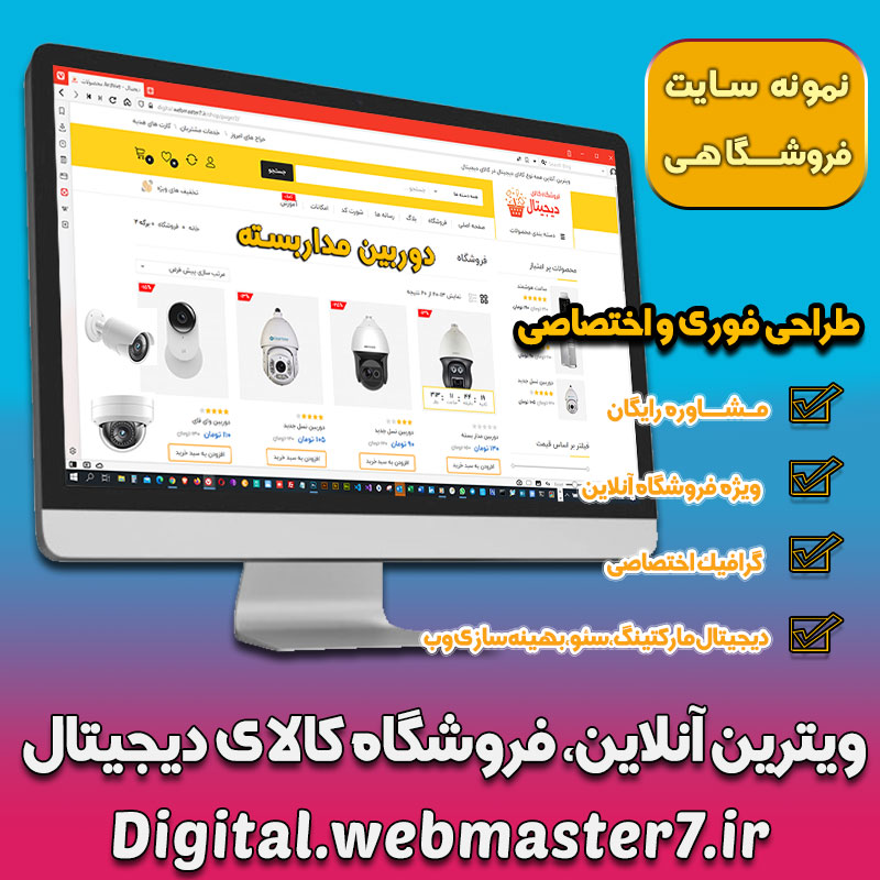 وب سایت مربوطه به عنوان نمونه کار معرفی گردیده است ، شما صاحب کسب و کار دوربین مداربسته و یا کالای دیجیتال میتوانید با درخواست اختصاصی نمونه ای از این ویترین آنلاین را داشته باشید.